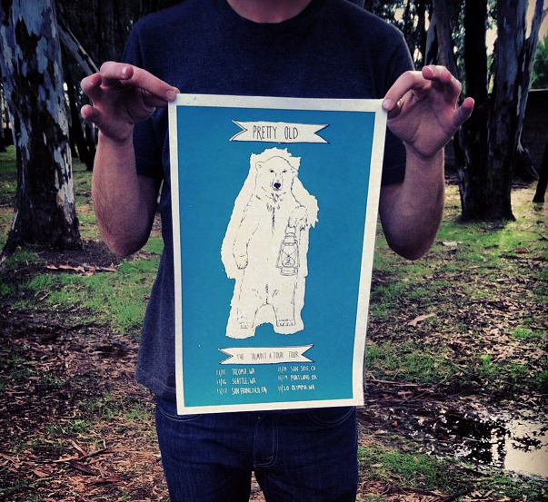 Tour posters designed by Zack, screen printed by Jason and Casey.